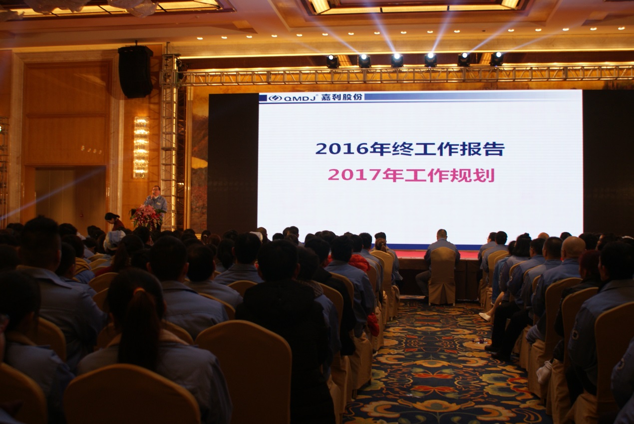 2016年總結及表彰會上,公司董事長黃玉琦先生、總經理漆愛冬先生、董事韓展初先生、廣東嘉利車燈有限公司總經理童黽先生、浙江嘉利工業(yè)有限公司常務副總吳世康先生等領導及公司全體員工共同參與了此次年會和聯歡晚宴。